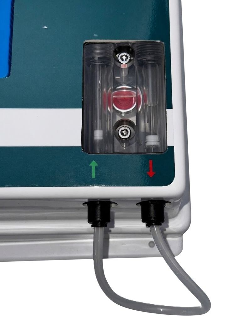 - Prietok čerpadla: cca 1l/h (pH) 1,8l/h (Rx – chlór)