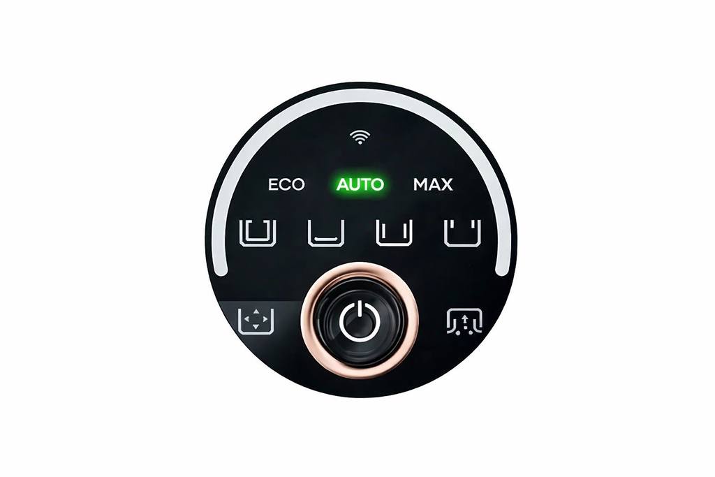 - AUTO: Automaticky upravuje sací výkon podľa detekovaného znečistenia bazéna