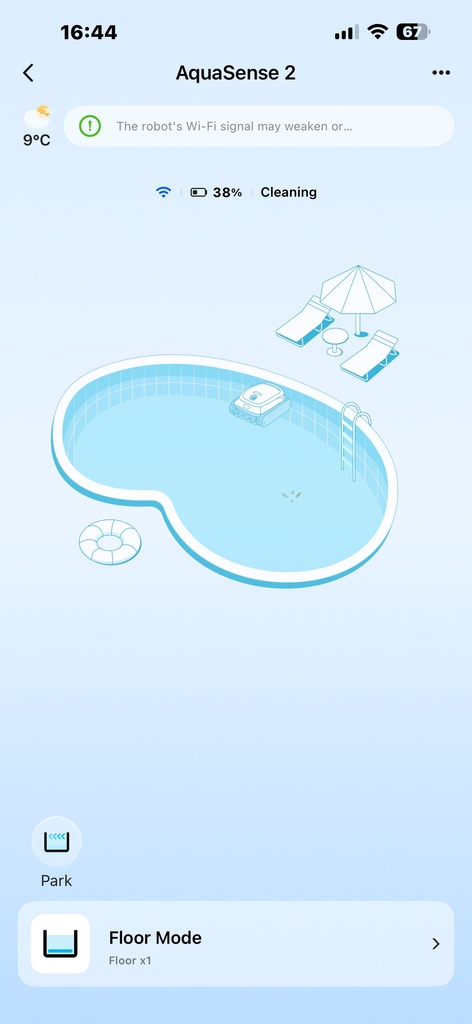 - Automatické parkovanie a SmartDrain™ – robot sa po práci sám vynorí, zaparkuje pri okraji a pri vytiahnutí vypustí vodu pre ľahkú manipuláciu.