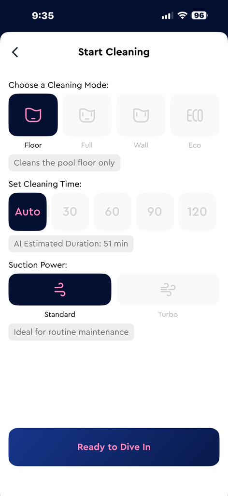 | Čistenie plochy: | Dno | Dno, steny | Hladina |