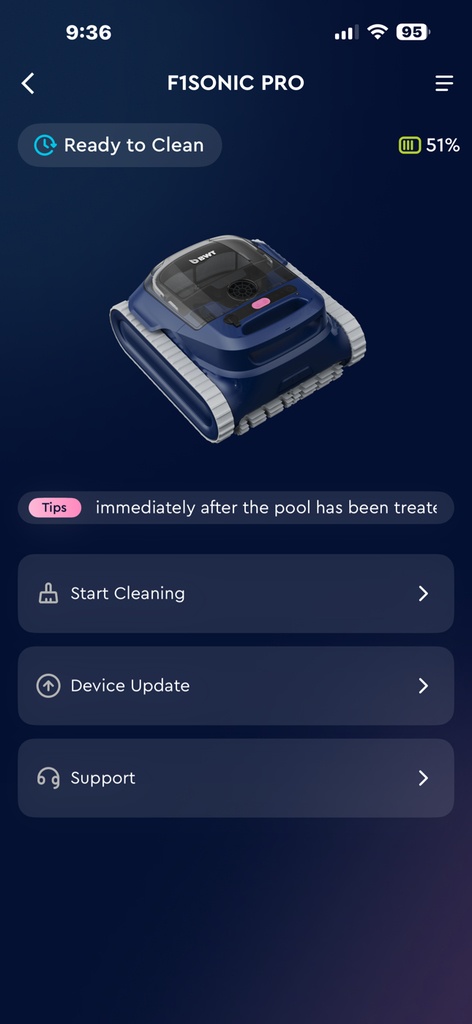 Zabudnite na námahavé čistenie a vysávanie bazéna. Káblový vysávač BWT F1 SONIC PRO vyčistí dno, steny aj vodnú linku bazéna za Vás.