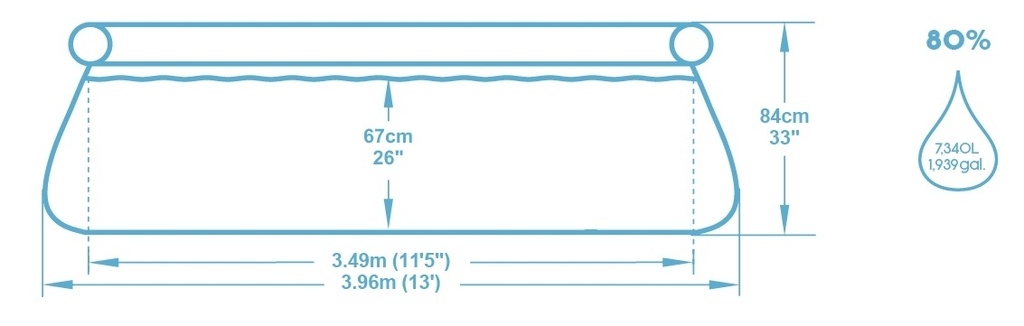 Bazén Bestway – 3,96 × 0,84 m (vodná kapacita 7340 litrov) je samonosný rodinný bazény pre povrchovú montáž.