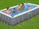Bazén Bestway obdĺžnik s konštrukciou (vodná kapacita cca 6478 litrov) je samonosný rodinný bazén. Nadzemný bazén na povrchovú montáž je vyrobený z trojvrstvového PVC. Vďaka svojej kovovej konštrukcii je veľmi pevný a stabilný. Dlhá životnosť. Upúta svojou jednoduchou montážou.