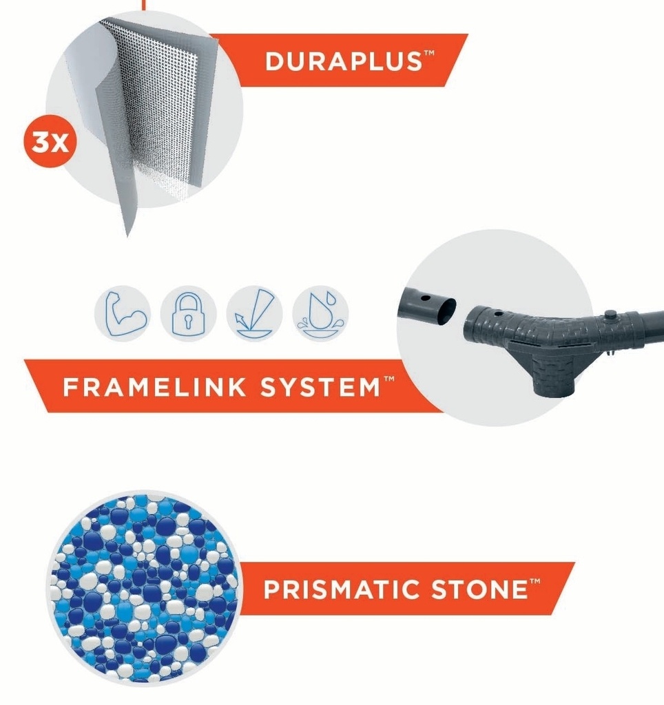 - Bazén je vybavený systémom Framelink System ™, ktorý zaisťuje bezpečné a pevné pripojenie rúrkové konštrukcie