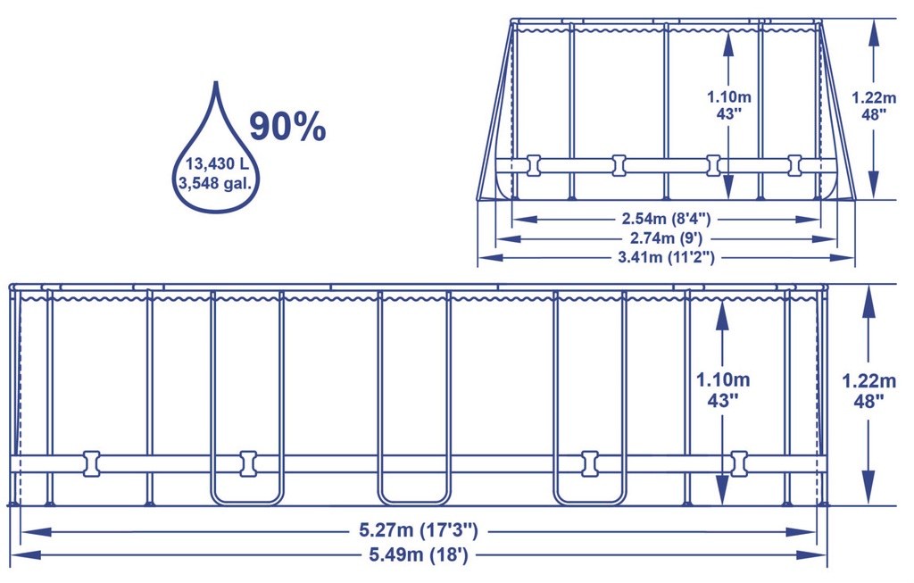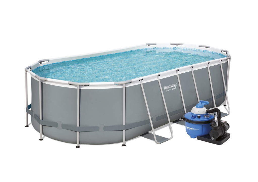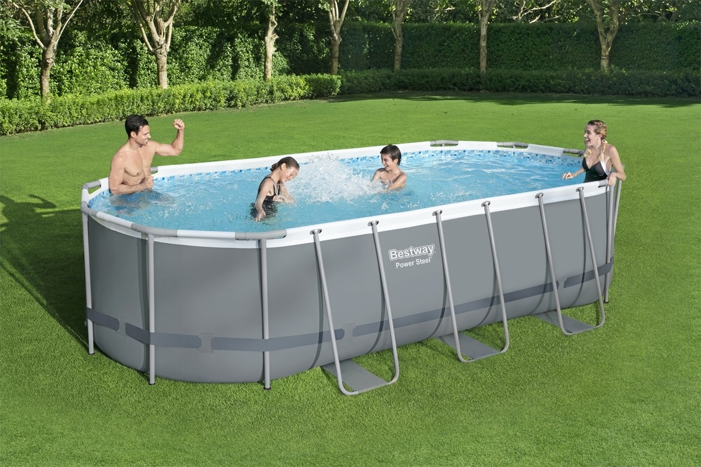 Bazén Bestway ovál s konštrukciou (vodná kapacita cca 13430 litrov pri 90% napustení) je samonosný rodinný bazén. Nadzemný bazén na povrchovú montáž je vyrobený z trojvrstvového PVC. Vďaka svojej kovovej konštrukcii je veľmi pevný a stabilný. Dlhá životnosť. Upúta svojou jednoduchou montážou.