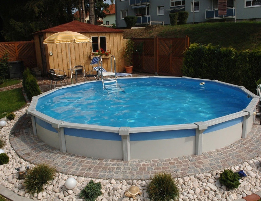 Kruhový bazén Sun Remo pre častočné alebo úplné zapustenie. Obsahuje teleso bazéna a skimmer.