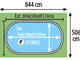 Rozmery bazéna: vonkajšie 804 × 386 × 124 cm, vnútorné 758 × 338 × 124 cm, výška 124 cm