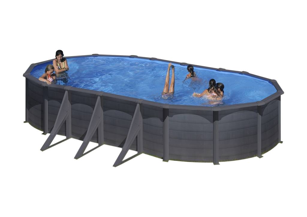 Oválny bazén GRE Graphite je nadzemný bazén s rýchlou a jednoduchou montážou. Dodávané bez filtrácie.