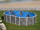 Oválny bazén GRE Iraklion je nadzemný bazén s rýchlou a jednoduchou montážou v prevedení bez bočných vzpier. Dodávané s pieskovou filtráciou 6 m3 / h.