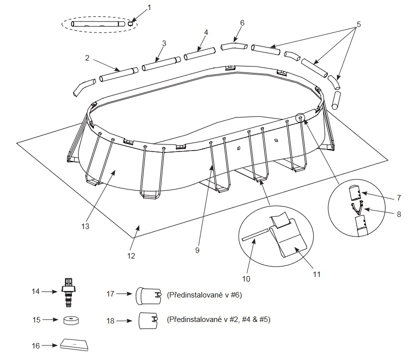 - Približná doba montáže činí v závislosti od vybavenia a veľkosti bazéna 60 minút a viac (bez prípravných prác pre podklad, resp. naplnenie).