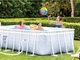 Bazén INTEX Prism Frame Chevron 4,00 x 2,00 x 1,00 je nadzemný bazén s kovovým rámom pre povrchovú montáž. Vrátane kartušovej filtrácie 2.006 l/hod a bezpečnostných schodíkov.