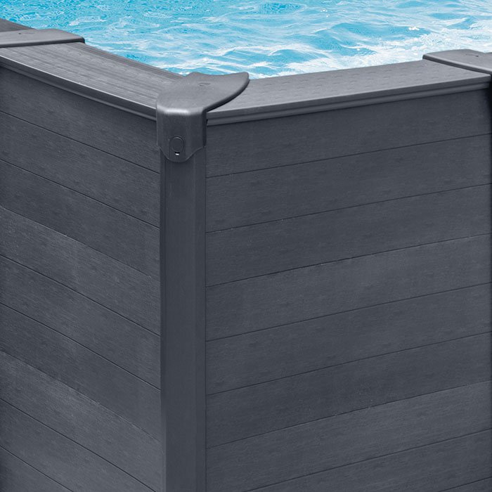 S veľkosťou 4 × 3 × 1,24 m ponúka celej rodine miesto na hranie, šantenie alebo relaxáciu. Plastové panely zhotovené v grafitovej farbe majú nielen kvalitný vzhľad prírodného dreva, ale zároveň zaisťujú stabilitu, pevnosť a odolnosť. Tento bazén sa dodáva s rozsiahlym príslušenstvom vrátane pieskového filtračného zariadenia. Objem vody pri naplnení 90% 10.100 l. O optimálne filtrovanie sa stará piesková filtrácia 4.000 l/h nachádzajúci sa v balení. Táto filtrácia prináša nielen veľmi dobrý výsledok filtrovania, ale taktiež obsahuje všetky potrebné prípojky. Krycia plachta a podložka na ochranu dna zaistia dodatočnú ochranu Vášho bazéna a znižujú mieru jeho znečistenia. S bazénom dodávané bezpečnostné schodíky predstavujú nielen pohodlný vstup a výstup z bazéna, ale zároveň vďaka odnímateľným stupňom, zabraňujú neoprávnenému prístupu do bazéna.