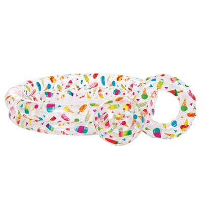 Dvojkruhový bazénik v sade s kruhom a loptou. Dodávané 2 rôznych prevedení. Cena za 1 set bazénika, kruhu a lopty.