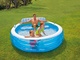 Približná veľkosť bazéna je 229 × 218 × 79 cm. Vodná kapacita – výška vody do cca 30 cm steny. Bazén má 2 vzduchové komory a vypúšťací ventil. Sediaca lavica, opierka chrbta a dva držiaky na pitie vám dodajú zaslúžený komfort. Vhodné od 3 rokov vždy pod dohľadom dospelej osoby.