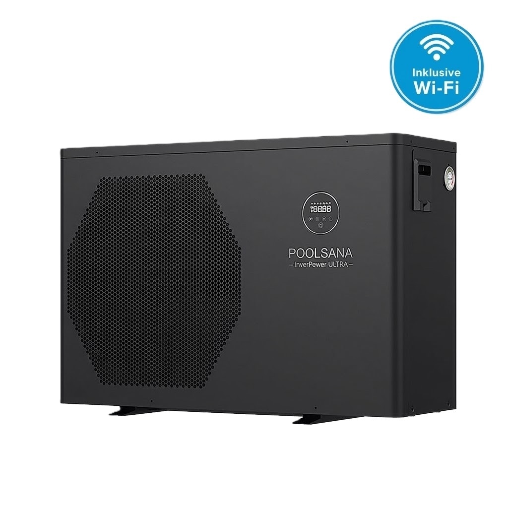 Tepelné čerpadlo POOLSANA InverPOWER ULTRA 9 s chladením je vysoko efektívne a energeticky úsporné tepelné čerpadlo s technológiou full-inverter ponúka až 9,48 kW vykurovacieho výkonu pri nízkej spotrebe energie (0,11–1,44 kW) a ultra vysoký COP až 18,18. Elegantný kovový kryt, digitálne ovládanie s dotykovým displejom a integrovaná WiFi funkcia umožňujúca pohodlné ovládanie cez aplikáciu. Tepelné čerpadlo podporuje kúrenie, chladenie aj automatický režim a je vhodné pre bazény do 35 m³.