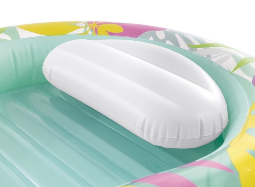 Nafukovacie lehátko Tropical Oasis so zvýšeným okrajom a vankúšikom.