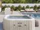 Vírivka INTEX Pure Spa s rozmermi 239 x 239 (merané uhlopriečne) x 71 cm poskytuje miesto až 6 osobám. S integrovaným systémom na úpravu slanej vody.