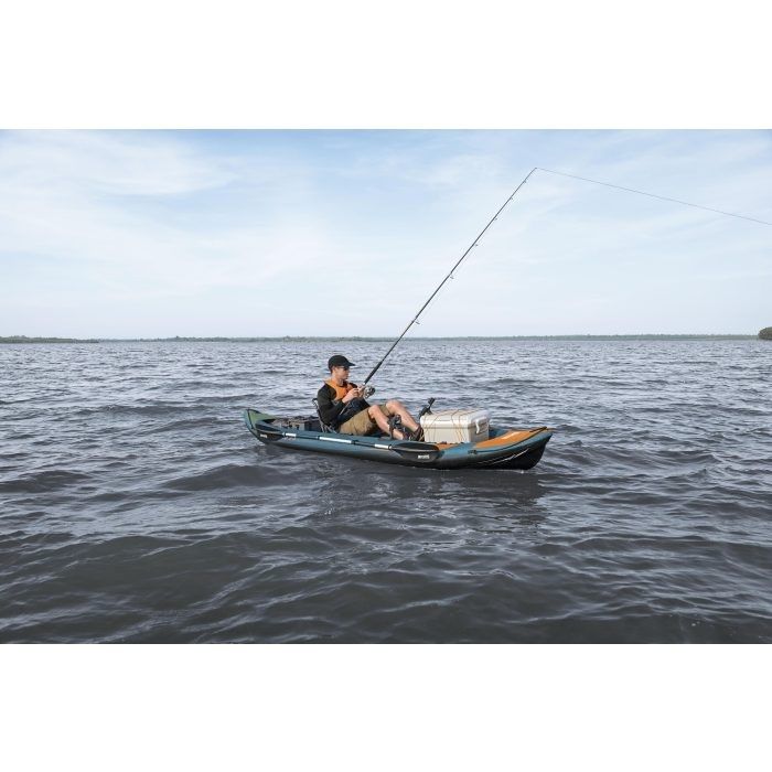 Hoďte rybársky prút a relaxujte na vode s Hydro‐Force Angler EliteTM X1, nafukovacím rybárskym kajakom pre dokonalý úlovok. Tento kajak ponúka vysoko kvalitné ripstop puzdro, ktoré je dvakrát silnejšie ako PVC, pre vysokú pevnosť a stabilitu tlaku, rovnako ako ľahkú podlahu FortiFiberTM Aire s technológiou drop stehov a protišmykovou EVA strednou rohožkou pre väčšiu rovnováhu.
