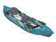 Nafukovací kajak pre dve osoby vrátane pádiel a ručná pumpa s integrovaným manometrom.