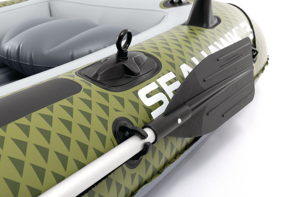 Nafukovací čln Seahawk 3 set určený pre 3 osoby. Sada obsahuje čln, dve pádla a ručnú pumpu.