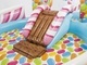 Zahŕňa 2 nafukovacie lízanky, koľajnice na kotúľanie loptičiek, 6 loptičiek, otvor na pripojenie hadice k sprške, šmýkačku.