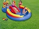 Tu sa ide rovno na vec! Hracie centrum značky INTEX s rozmermi 297 × 193 × 135 cm ponúka všetko, čo si deti želajú. 2 bazény, rôzne hry s loptami a krúžkami, dúhovú sprchu s pripojením na záhradnú hadicu, šmykľavku – to všetko rozdelené do 2 rôznych bazénov.