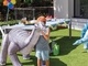 Nafukovací dinosaurus v dvoch variantoch Triceratops alebo Brontosaurus.