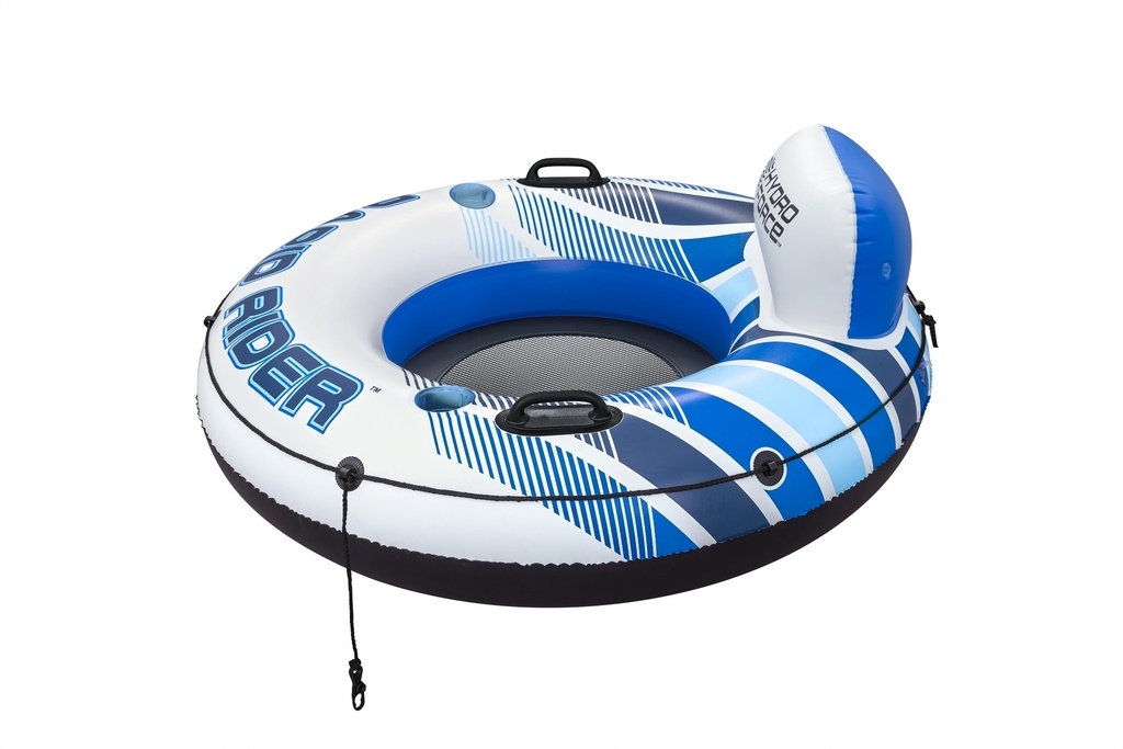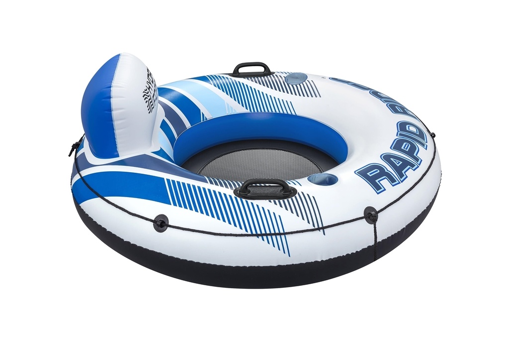 Tento nafukovací kruh je vyrobený z vysoko kvalitného vinylu a je veľmi odolný. Spodná strana zo sieťoviny vás ochladí a vstavané operadlo poskytuje skvelé pohodlie pri sedení. Kruh je tiež vybavený dvoma držiakmi na nápoj, takže vám pri odpočinku vo vode nebude chýbať potrebné osvieženie. Uchopovacie lano dookola so vstavanými priechodkami uľahčuje nastupovanie a vystupovanie. Nafúknutie aj vyfúknutie kruhu je ľahké a rýchle.