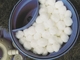 Polyetylénové biele penové guľôčky s priemerom cca. 55–60 mm