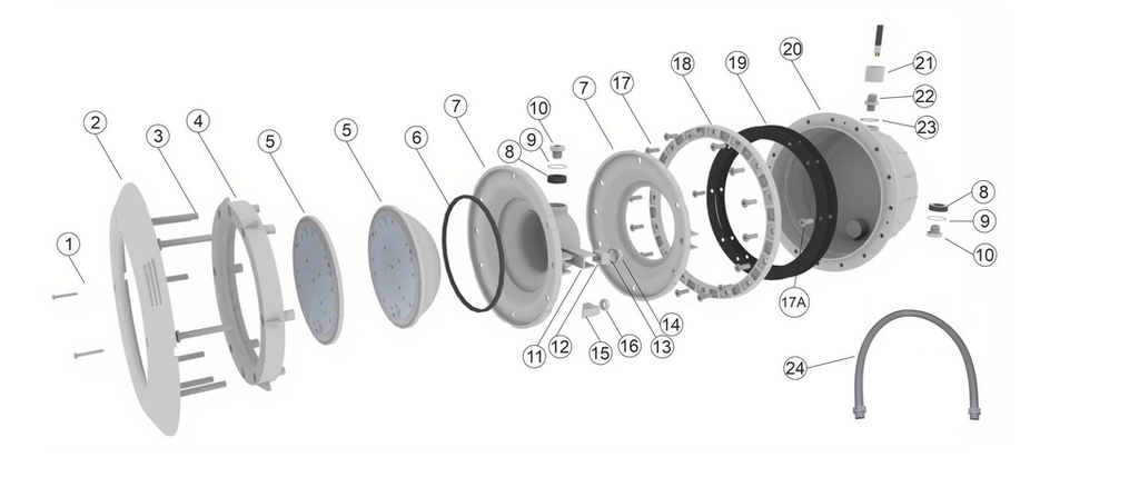Podhladinové svetlo (reflektor) 300W je určené pre fóliové bazény. Vyrobené kompletne z plastu ABS.