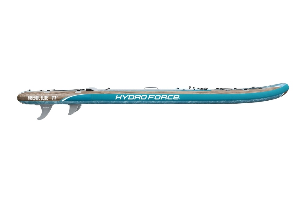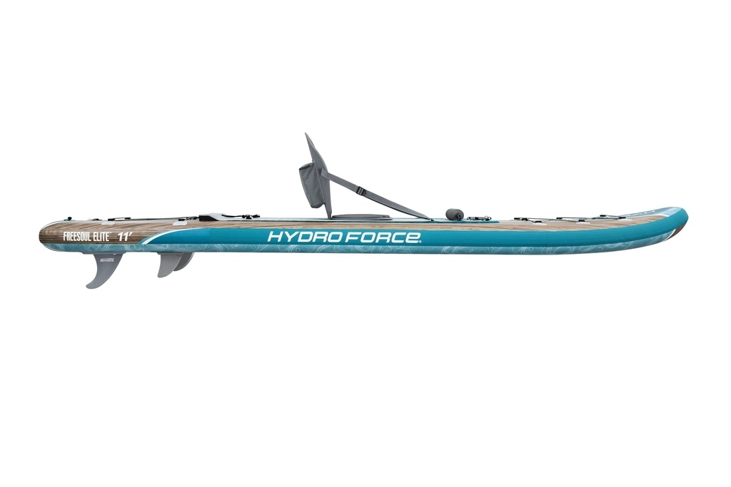 Nafukovacia doska Hydro Force SUP Freesoul Elite od spoločnosti Bestway s rozmermi 335 × 84 × 15 cm je ideálnym spôsobom, ako zostať aktívna pri vode. Skvele vyrobená doska s protišmykovou diamantovou trakčnou podložkou s kick Pad, veľmi dobre tvarovaná s pružným surferským vodítkom sa osvedčí na nejednom vodnom diele.