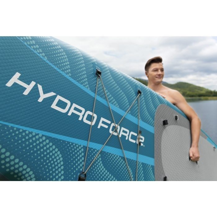 Nafukovací paddleboard Hydro Force SUP Allround Board-Set Aqua Drifter od spoločnosti Bestway s rozmermi 335 × 91,5 × 15 cm je ideálnym spôsobom, ako zostať aktívny pri vode. Paddleboard s protišmykovou podložkou s kick Pad, veľmi dobre tvarované s pružným surferským vodítkom sa osvedčí na nejednom vodnom diele. Odnímateľné sedadlo s operadlom a opierkou nôh umožňuje počas niekoľkých minút premenu paddleboardu na kajak.