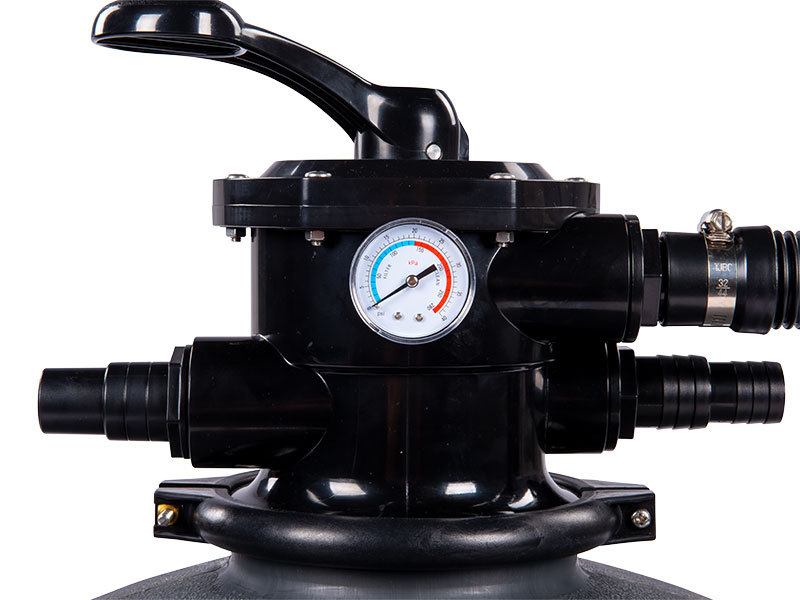 Piesková filtrácia sa skladá z filtračnej nádoby so 6 cestným ventilom s manometrom, prepojovacou hadicou a čerpadlom s veľkým predfiltrom.