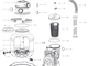 Filtračné zariadenie sa skladá z plastovej podstavy, polypropylénovej filtračnej nádoby s priemerom 254 mm s vrchným 6-cestným ventilom integrovaným do veka nádoby, manometra a čerpadla s vlasovým predfiltrom.