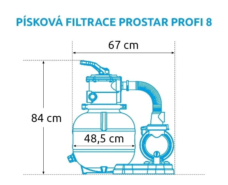 Filtračné zariadenie sa skladá z polypropylénovej filtračnej nádoby (priemer nádoby 485mm) s vrchným 6-cestným ventilom s manometrom.