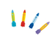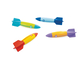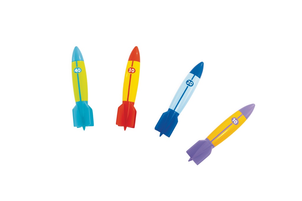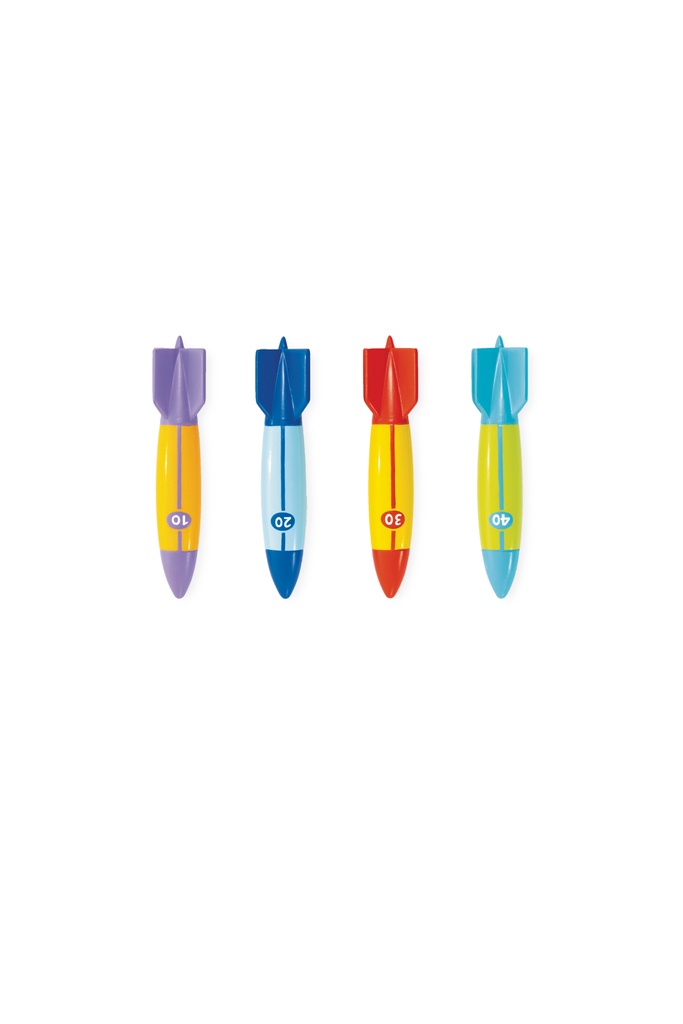 Hračky na potápanie v tvare torpéd vo veselých farbách.