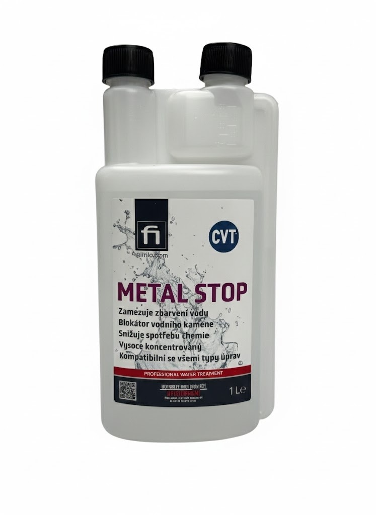 Metal Stop je určený pre problematické studničné vody s vysokým obsahom kovov a minerálnych solí. Odstraňuje železo, meď, striebro a ostatné kovy. Rozpúšťa kovové aj vápenaté usadeniny z dna a stien bazéna bez nutnosti jeho vypúšťania prevádzka bazéna je možná aj bezprostredne po použití prípravku. Nahrádza pôvodný výrobok od firmy Chemoform Metal Magic.