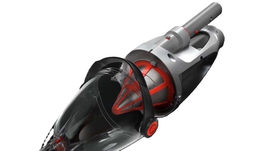 - Vysávač je možné držať za ergonomickú rukoväť alebo ho je možné pripojiť k štandardnej teleskopickej tyči (nie je súčasťou dodávky)