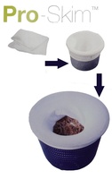Skimmer, alebo zberač hladinových nečistôt. Hladinové nečistoty skimmer sťahuje do filtračnej jednotky (pieskový filter) a za pomoci trysiek sa čistá voda vracia späť do bazéna. Rozmer rámčeka 15 × 14,4 cm (vnútorný otvor vtoku vody z bazéna).