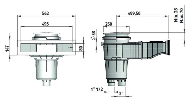 Bazénový skimmer veľký 17,5 l vhodný pre fóliové a prefabrikované bazény.