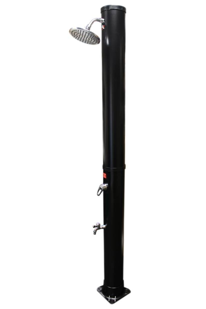 Samonosná dvojdielna konštrukcia sprchy slúži zároveň ako zberný zásobník vody a solárny kolektor, ktorý pôsobením slnečných lúčov vodu ohrieva. Teplotu vody si určíte sami vďaka pákovému kohútiku s reguláciou prívodu teplej/studenej vody.