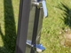 Solárna sprcha GRE s hliníkovou nádržou na 38l vody a kohútikom na oplach nôh.