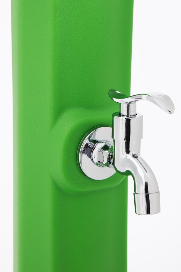 S 220 cm vysokou solárnou sprchou získate teplú vodu do 23 litrovej plastovej nádrže.
