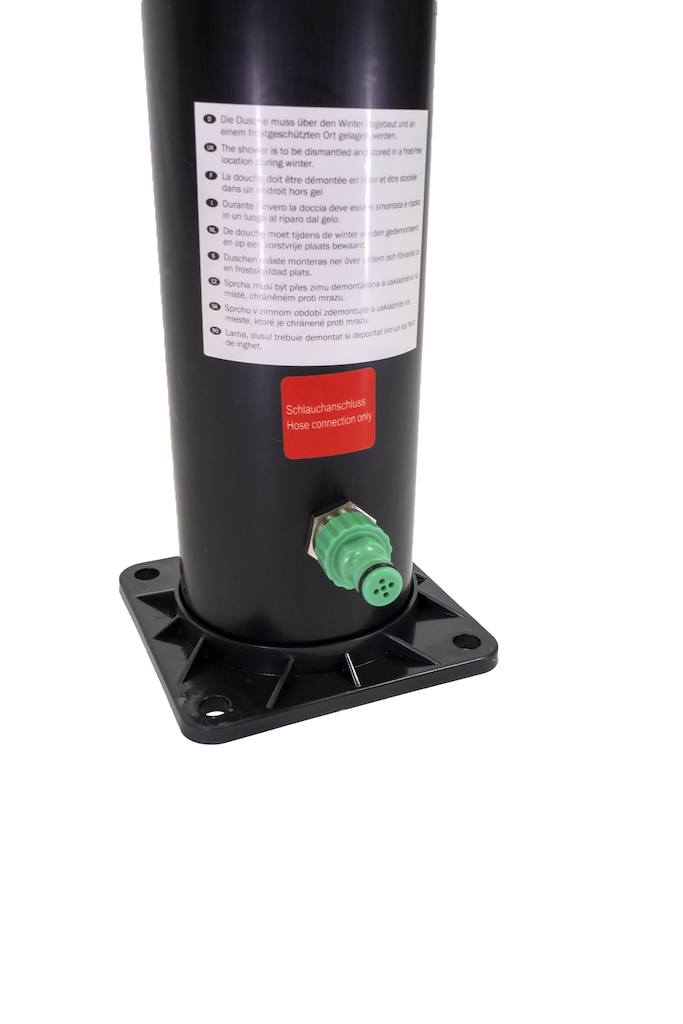 Montáž sprchy je veľmi jednoduchá a zvládnete ju sami. Solárna sprcha sa pripevní k podkladu pomocou 4 skrutiek, ktoré sú súčasťou balenia. Potom už stačí pripevniť záhradnú hadicu a je to hotové. Pokiaľ nechcete sprchu pripevňovať k zemi, môžete k sprche dokúpiť podlahový podstavec a pripevniť k sprchu k nemu. Pokiaľ je podstavec dostatočne veľký, zaistí samonosnosť sprchy a nie je ho potrebné viac kotviť. Podstavec je praktickým doplnkom k solárnej sprche – je protišmykový, bezpečný as odtokom vody. Sprchu pripevnenú k podstavcu je možné ľahko preniesť na iné miesto v záhrade.