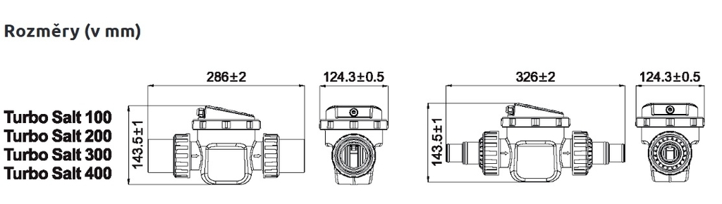Turbo Salt je dodávaný s pripojením 50 mm (1' 1/2) a adaptérmi 32/38 mm.