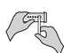 - Testovací prúžok vytiahnite zo šálky tak, aby prúžok ktorý sa sfarbí bol smerom nahor a držte ho vo vodorovnom stave.
