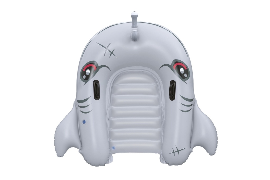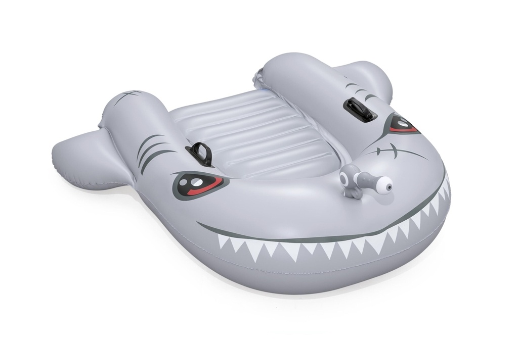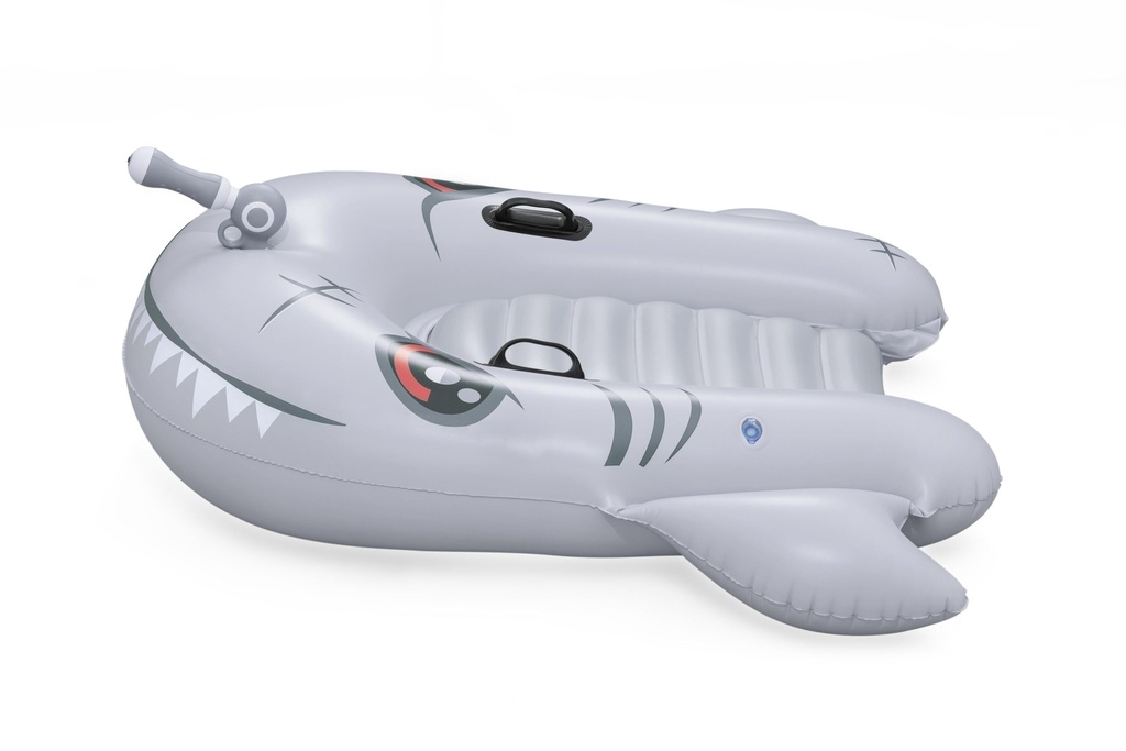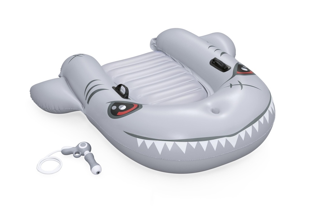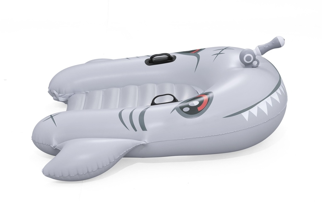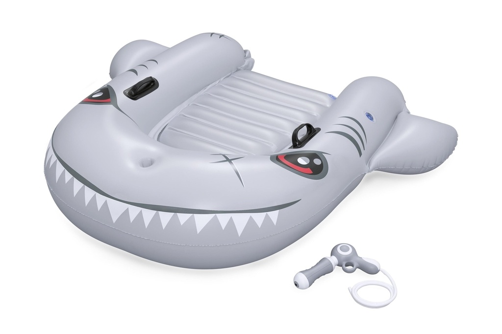 Skvelé vozidlo do vody v dizajne žraloka, s vodnou pištoľou na prednej časti.