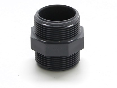 PVC tvarovka - Dvojnipl 1 1/2 "ext. PVC Dvojnipl; pripojenie - závit ext. x závit ext .; farba - šedá; (Ext. = Vonkajšie)