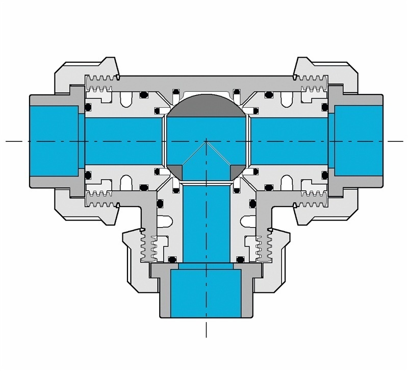 Možnosť regulácie prúdenia vody v tvare písmena T.