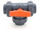 Trojcestný guľový ventil PVC s napojením s priemerom 50mm. Napojenie lepením.